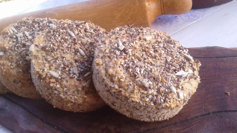 Pan para hamburguesas o sandwichitos con harina de almendras, harina de coco, huevos, leudantes, sal, harina de lino, semillas de chia, aceite de girasol